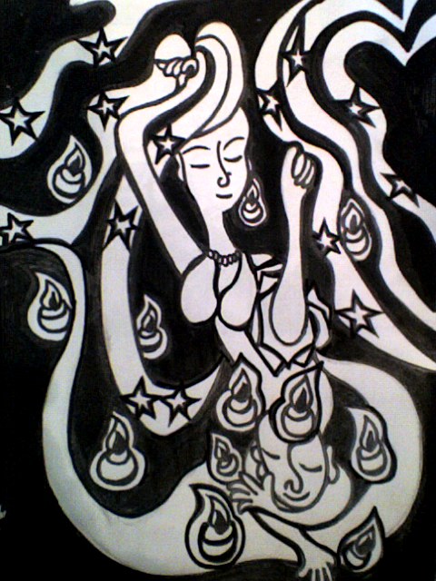 書家菊池錦子の墨アートと天心のフレームとのコラボレーション