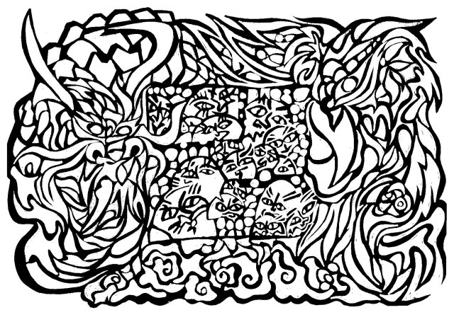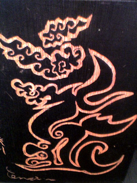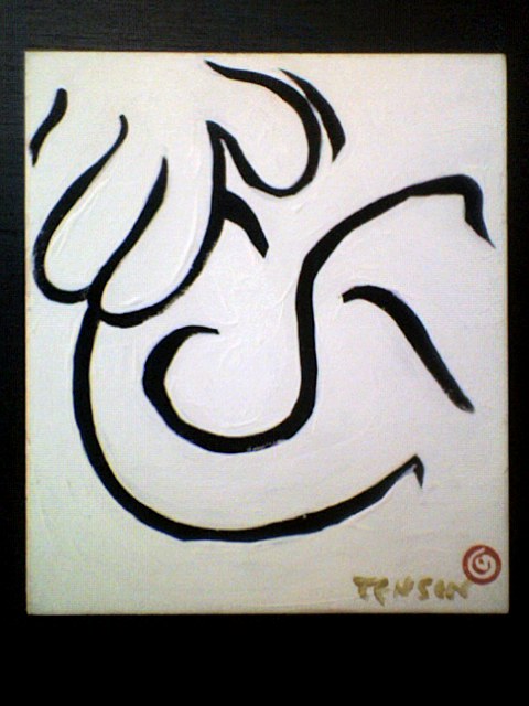 墨地・またはアクリル地に絵などを描刻・彩色して「梵字」にトライしました。