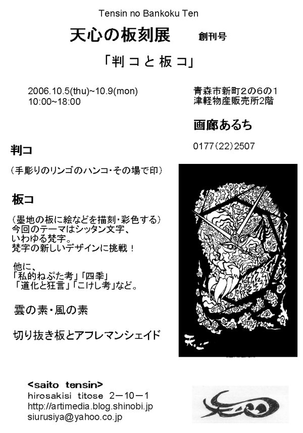 さいとう天心の板刻展を黒石の「アフチャー」でも開催します!