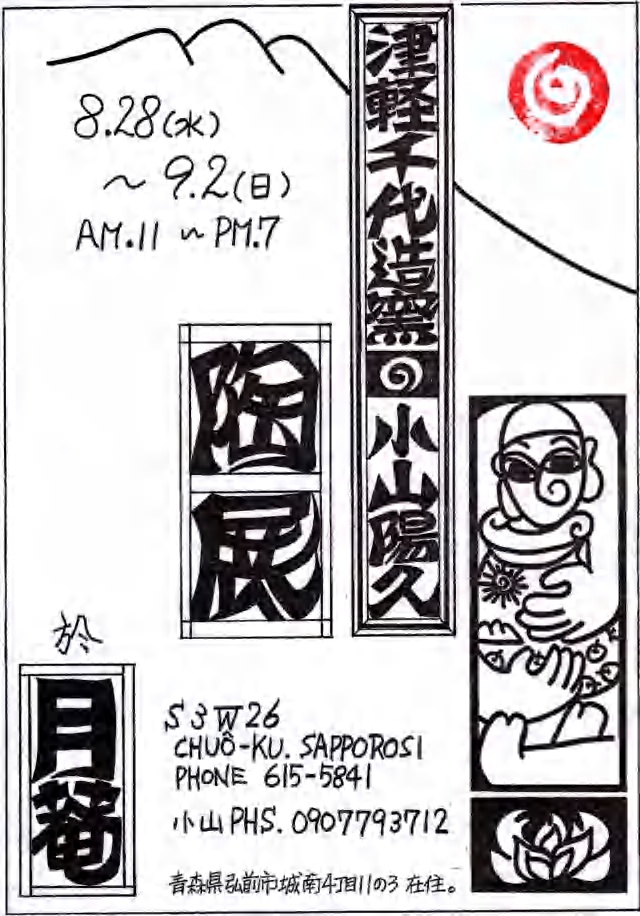 これは陶芸家小山陽久さんに依頼されて、札幌に行くので津軽のアイテムを入れた案内状ー、やっぱ岩木山でし、牡丹でし、ということになりました。