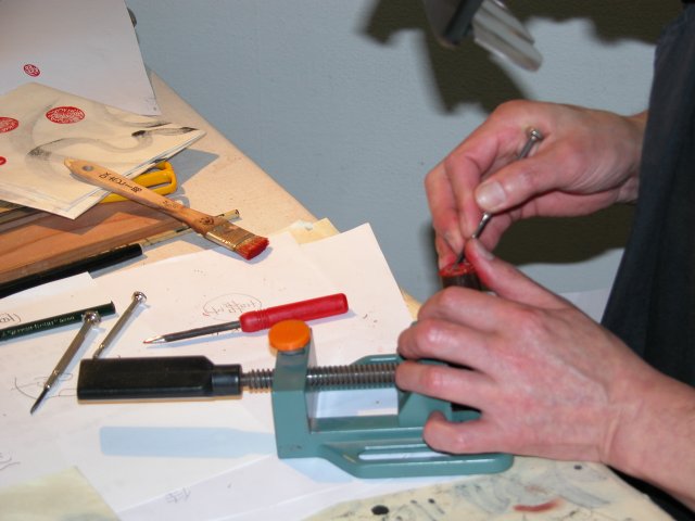 パフォーマンス& はんこ:さいとう天心<クラフトの展示あり、リンゴの枝からオリジナルなハンコを造りだす手作業の面白さを伝える>