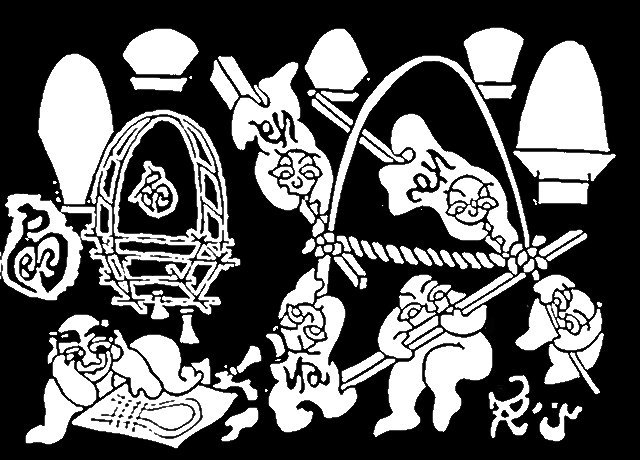 けれども、ただ四角形に書いたのでは、造形美とは言えない角燈籠になってしまう。そんな困難な状況に悩む「ねぷた馬鹿」の傍らには、人形ねぷたの材料の木材と竹材が転がっていたであろう。